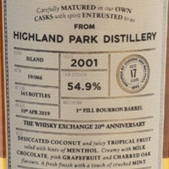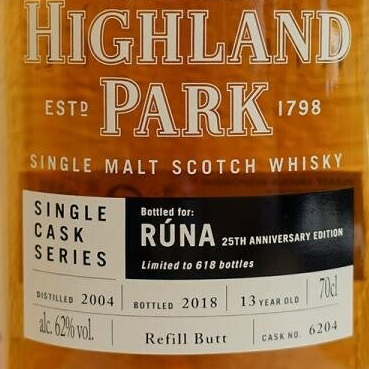 Nase: herzhafter, ledriger Sherry zu Beginn. Etwas Miso, dann zeigt sich die eigenständige Torfnote von Highland Park in starker Ausprägung. Heidekräuter, erdige Wurzeln und würziger Honig