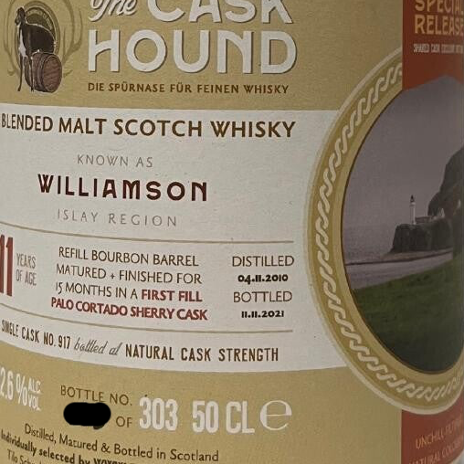 Gaumen: stark in Alkohol- und Rauchgehalt. Die Zunge prickelt, der Torf beißt sich herb in die Schleimhäute. Karamellisierter Speck, Piment und schwarzer Pfeffer, aufgehellt von Zitronensaft und Muschelkalk