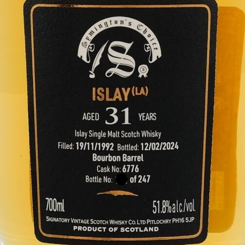 Nase: süß. Tropische Süße über allem, die man so nie mit der Brennerei verbinden würde. Vollreife, evtl. überreife Mango mit alkoholischem Touch, dazu duftige Maracuja. Fruchtige Trockenheit breitet sich aus, Grapefruit und Orangenzeste. Dazu cremig in der Nase, Mandel- creme mit einem Hauch Meersalz. Der verbliebene Rauch zeigt deutliche Kräuterelemente (ähnlich dem 25-jährigen)