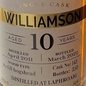 Nase: brachial, wie man es sich von einem jungen Laphroaig wünscht. Glühend, aschig und staubtrocken zeigt sich der Rauch, der einen deutlich jodhaltigen Charakter hat. Grüne Bananen, heller Biskuit und stark verkohltes Holz. Eine Spur Zitronenschale