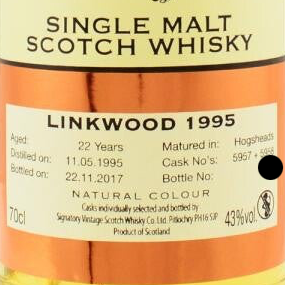 Nase: sofort unverkennbar Linkwood. Blumige Süße und grasige Trockenheit halten sich hier wunderbar die Waage. Spritzige Ananas, Zitronenöl und Geißblatt werden ergänzt um Heu, Sandelholz und ein wenig Räucherstäbchen. Später frische Minze und Anis und vielleicht ein winziger Hauch Lösemittel