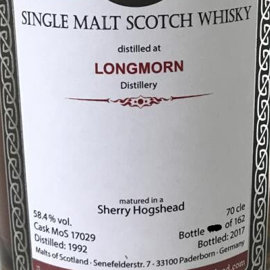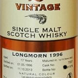 Kommentar: die 96er Longmorns sind legendär, die 105er Fässer hier meist etwas heller und insgesamt fruchtig-süßer, als die dunkleren 72er Schwesterfässer