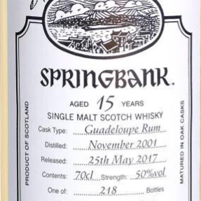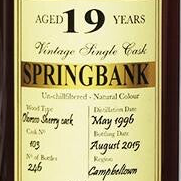 Nase: typischer, leicht salziger Springbank-Küstencharakter, gerade so spürbarer kräuteriger Rauch, gelbe Früchte wie Mirabelle und gesüßte Dosenpfirsiche, gebrannte Mandeln, Salzkaramell, Marzipan, trockene Erde, frischer Pfeffer